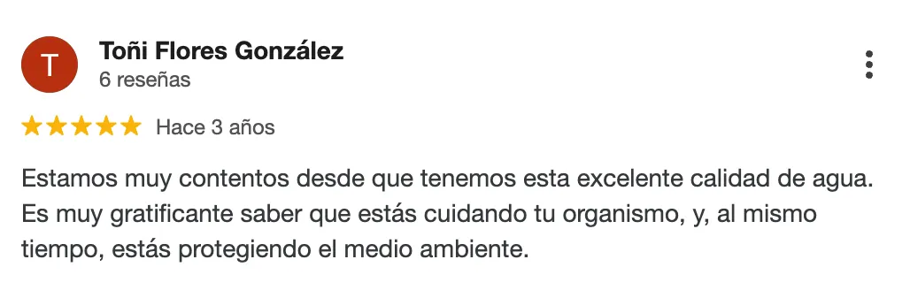 Obteniendo la mayor calidad de agua que puedes conseguir a día de hoy en España.
