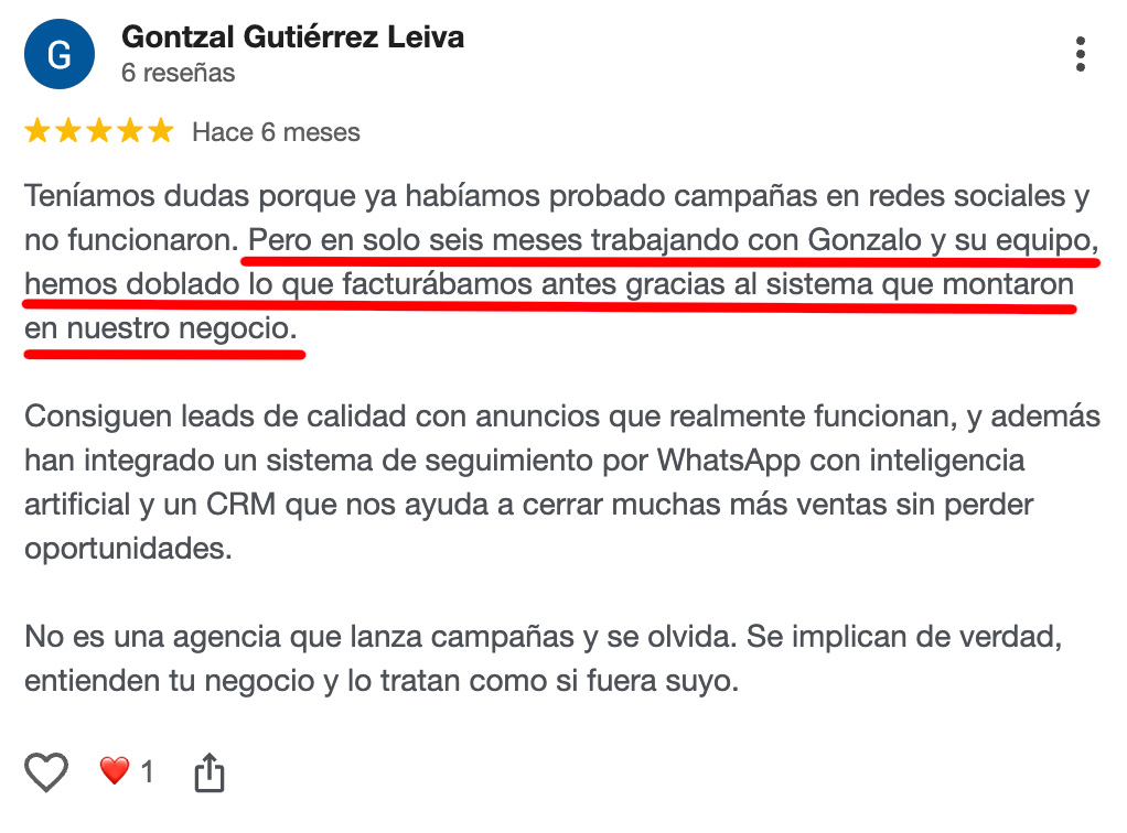 Tú verás EXACTAMENTE cuántos clientes consigues y cuánto facturas con cada euro que inviertes.